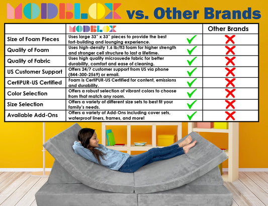 Mod Blox 10 Piece Large Soft Furniture Playset Modular Microsuede Foam Play Couch for Creative Kids